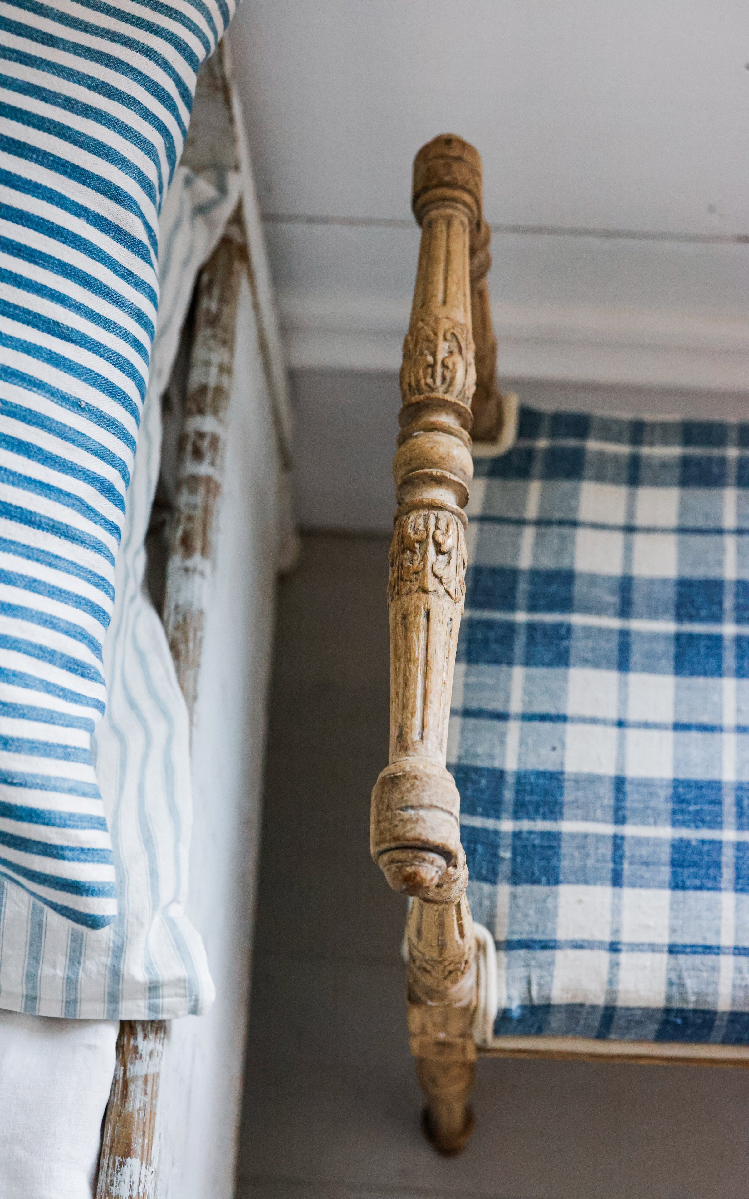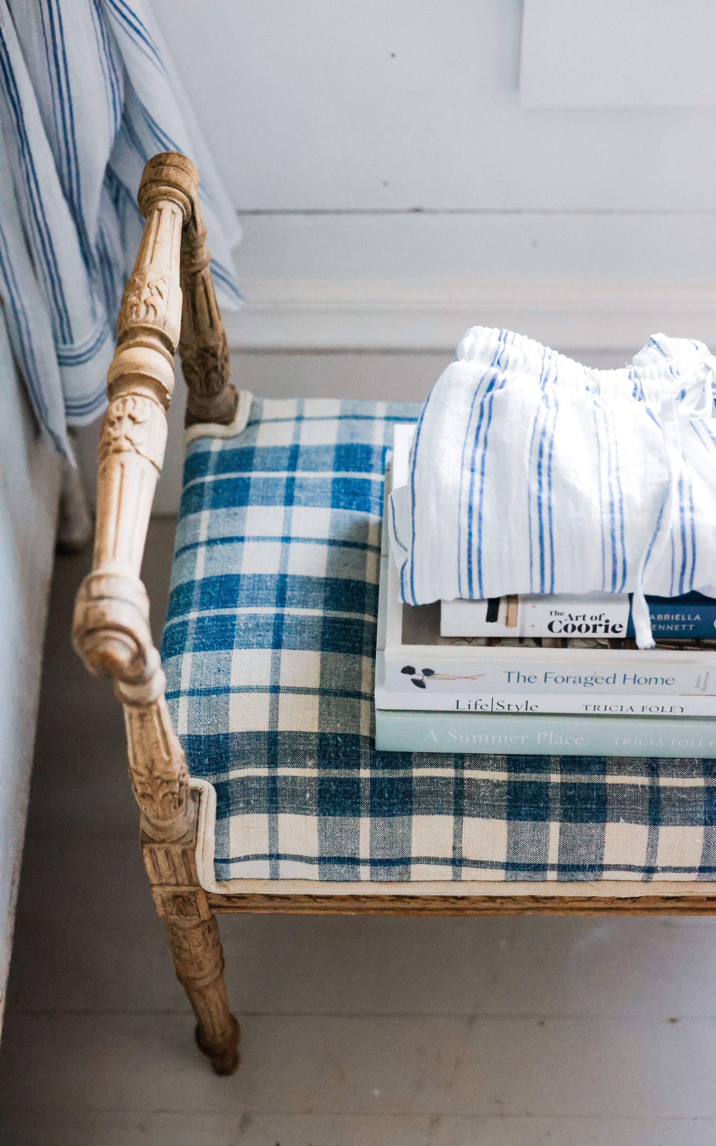 This is a vintage French stool. I found it in Provence. I love the that it was upholstered in vintage French linen at some point.