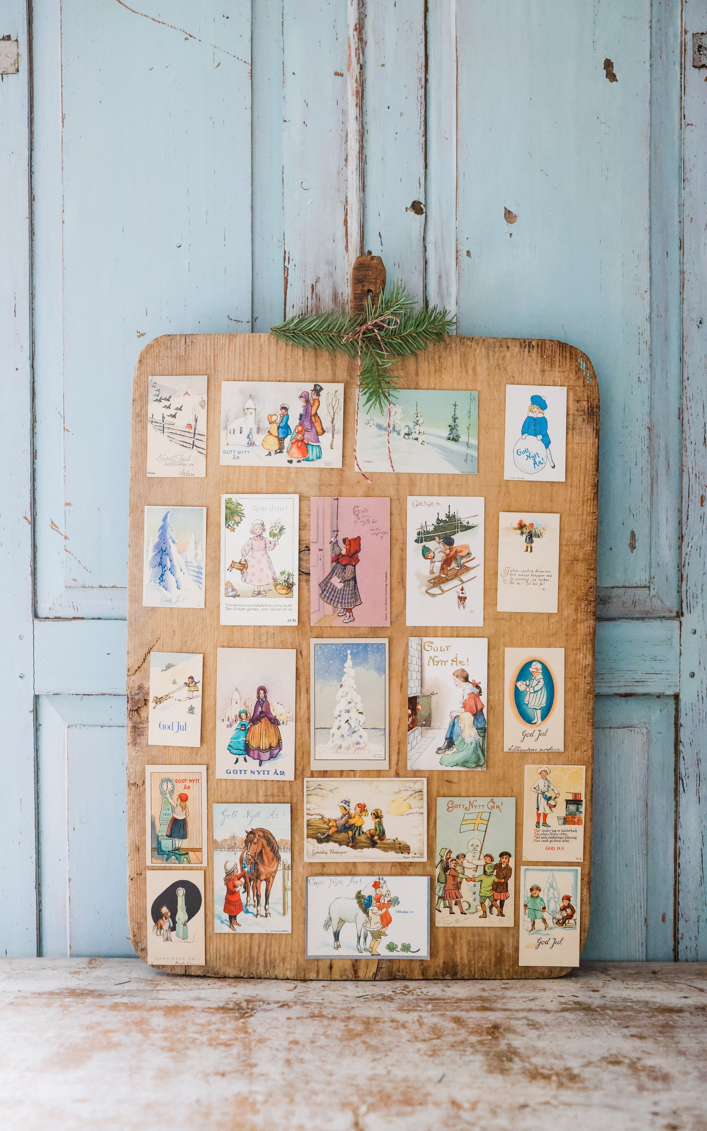 It is vintage and shows signs of wear and may contain wood worms. The board is worn in areas and cracked. Post Cards are NOT included. Just sharing a fun way to use the bread board during the holidays.