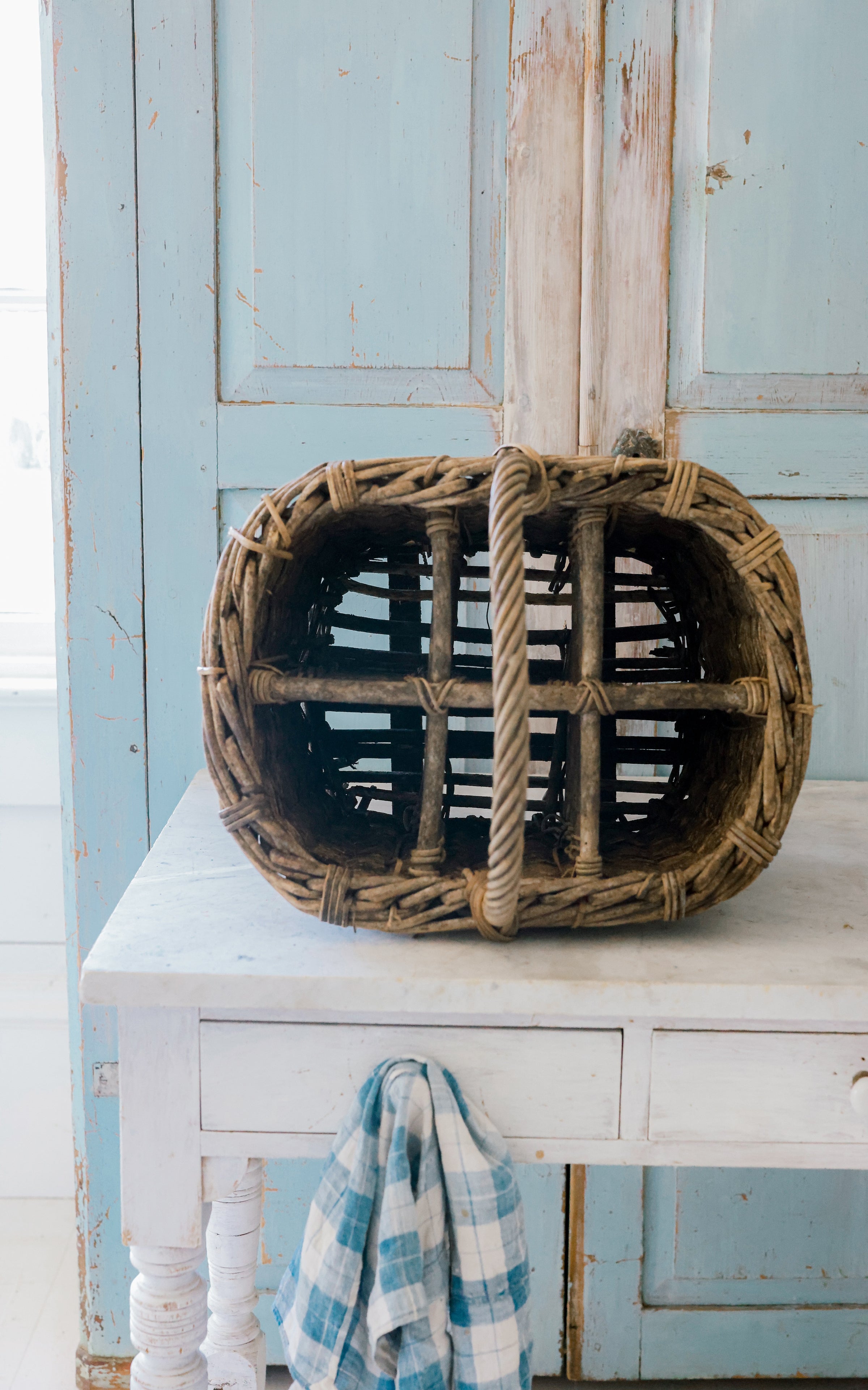 This is a vintage French champagne basket. It is vintage and shows signs of wear. The wood may be worn in areas. It does contain worm holes.
