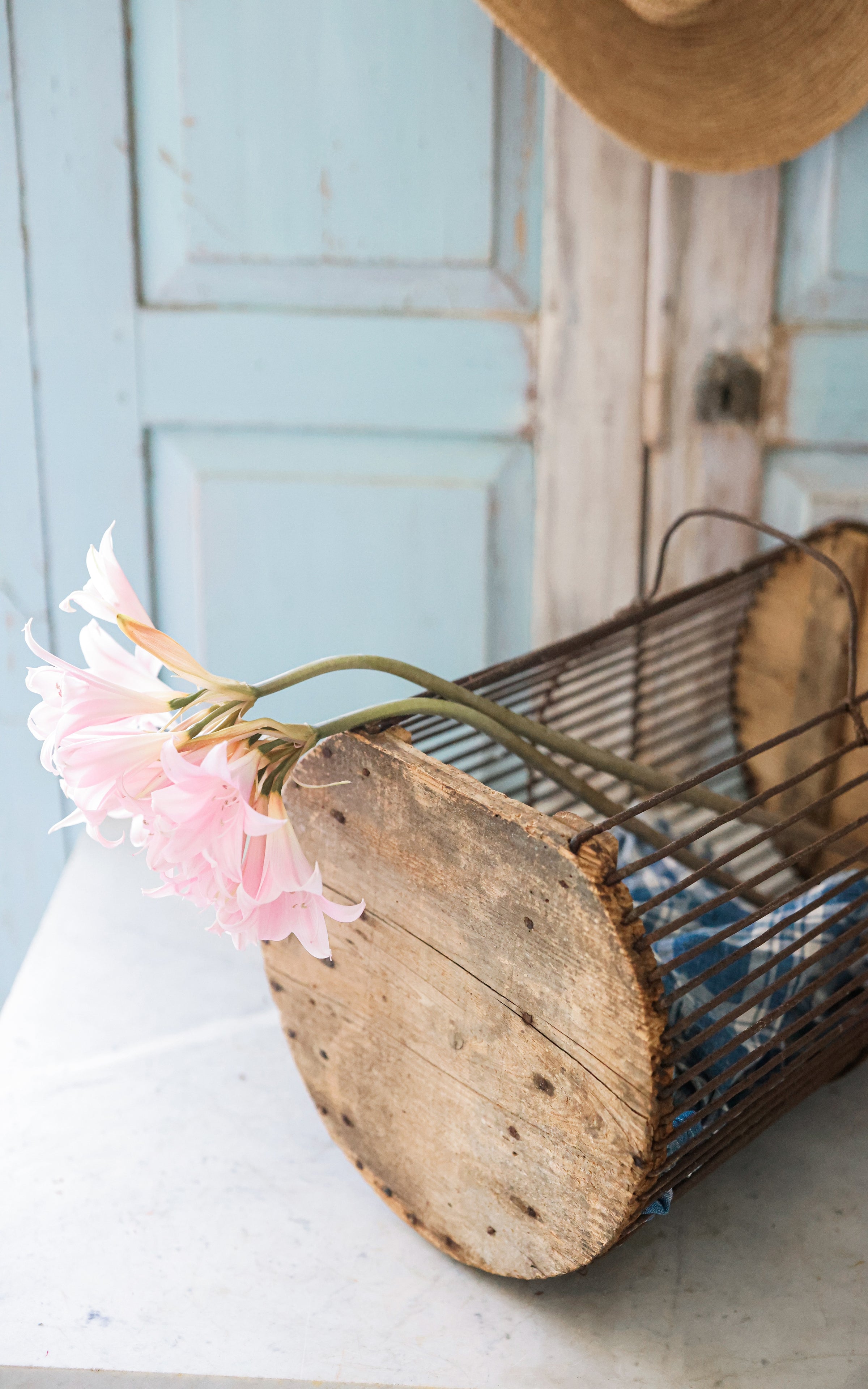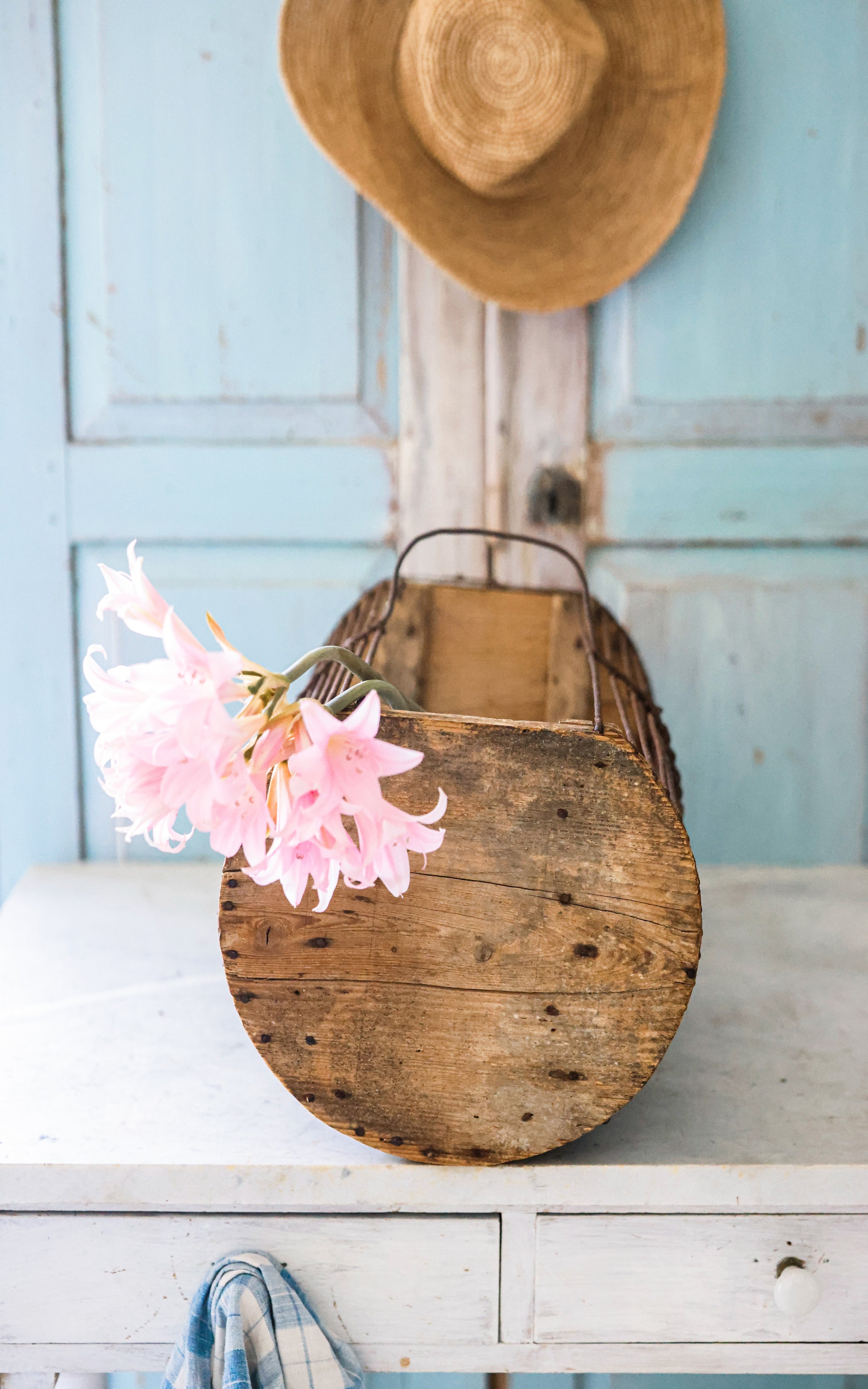 This is a vintage French trugg. It is vintage and shows signs of wear. The wood may contain worm holes and the metal contains rust.
